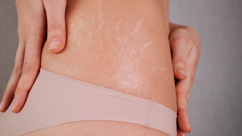 Skin texture irregularities caused by rapid growth or pregnancy